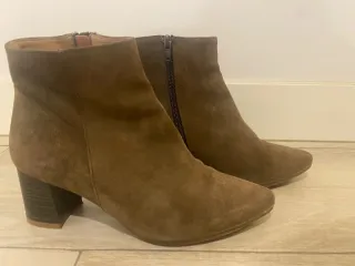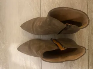 Botines de ante de la marca MiMao. - Color marrón. - Diseño elegante y moderno. - sin usar (regalados y prefiero zapatillas)