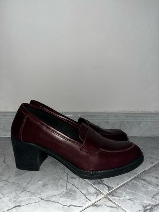 Elegantes zapatos de piel en color burdeos. - Fabricados en piel. - Tacón grueso. -Talla 40