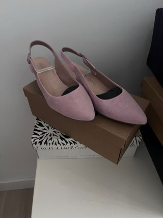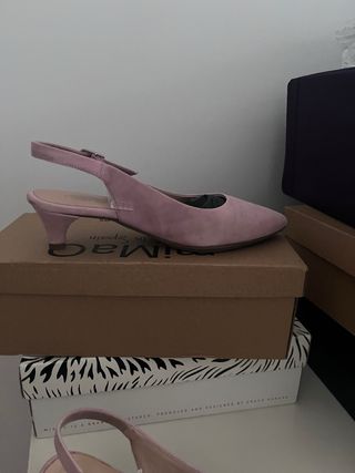 Zapatos salón ante rosa destalonados