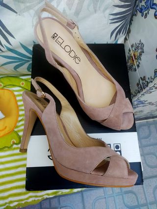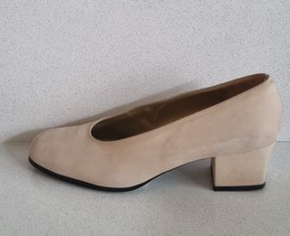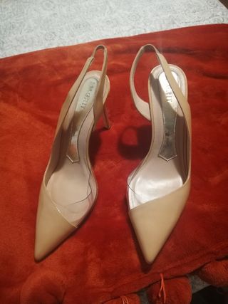 zapatos tacón destalonado talla 38,ante,color nude con un solo un uso.