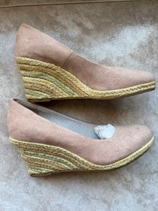 zapatos con cuña de esparto color rosa nude. usados dos veces. la cuña es de color beige, rosa nude y color menta.