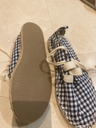 Preciosos zapatos de tacón de cuña y de la marca Stradivarius. Son de color nude y talla 38. - Material tipo ante, suaves al tacto. - Diseño elegante y sofisticado. - Perfectos para cualquier ocasión. Un sólo uso.