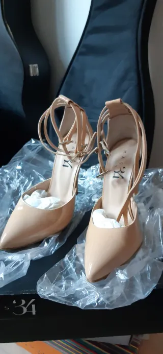 Zapatos nude de fiesta tacón 10cm T38. 3Usos