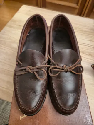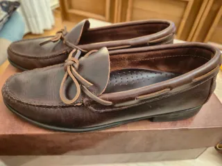 Mocasines clásicos de piel en color marrón. Un calzado cómodo y versátil. Antonio Parriego. - Material exterior: Piel. - Detalle de nudo en la pala. - Suela de goma. A estrenar.