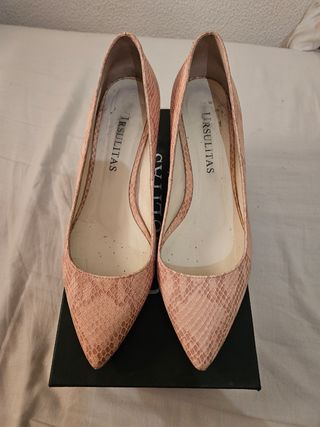 Usados solo una vez para una boda. Alguna manchita en el interior. Color rosa nude con efecto piel de serpiente.