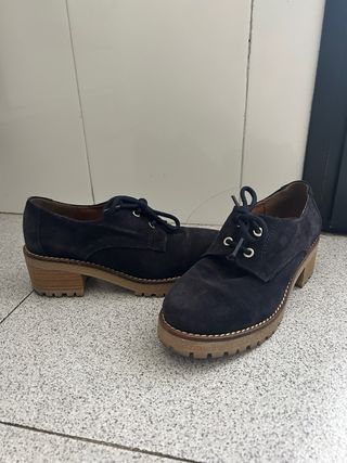 Preciosos zapatos de ante azul marino, talla 37. fabricados en España. Ideales para un look casual y elegante. usados un par de veces. - Son de estilo Oxford. - Tienen un tacón pequeño y cómodo. - Están fabricados en ante de buena calidad. - Se encuentran en buen estado.