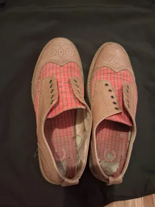 Zapatos Fred Perry estilo Oxford con cuadros escoceses.Zona interior taconazo desgastado,por lo demás todo ok! - Diseño con perforaciones decorativas. - Combinación de materiales. - Cierre de cordones.