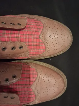 Como nuevo, los usé una vez para una celebración. Están impolutos. Hechos a mano en Mallorca. Nuevos fueron 250 euros. talla 10 inglesa; equivale a un 44.4 EUR segun su tallaje. color rois teja, tirando a marron. incluyo cordones, obviamente, pero para las fotos se ve mejor el estado sin ellos. Incluye caja tambien.
