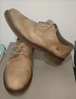 Vendo elegantes zapatos Xti de vestir para hombres, color marrón, talla 43. Los mismos son de segunda mano, pero estan en perfecto estado y se venden por no darles uso alguno. - Modelo casual y de vestir. - Diseño tipo Oxford con picado. - Cordones para ajuste. - Zapatos de piel con suela de goma.