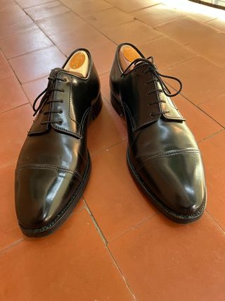 Elegantes zapatos Oxford de cordones de la marca Crockett & Jones, modelo Bradford. Shell Cordovan Hoorween. Horma 341. Impecables, reestreno total. Menos de 5 puestas. Se vende por falta de ajuste. Brillo espectacular. La doble suela de cuero está intacta ya que le instalé protector de goma desde el primer día. Un zapato de verdad, para toda la vida. - Hormas no incluidas. Entrega en mano o envío rápido mediante Correos certificado con valor declarado previo pago por transferencia bancaria inmediata. Éste articulo no lo envió por Wallapop. PVP en tienda 995€ Más cosas en mí perfil.