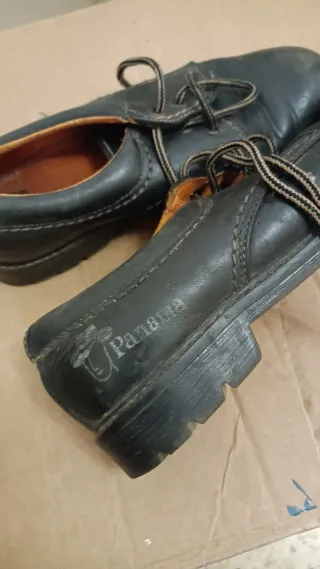 Zapatos de vestir de cuero negro. Muy cómodos y elegantes. Suela de goma muy antideslizante. Panamá Jack tiene una calidad muy buena. La suela está como nueva. Se ha usado 5 veces (para bodas y comuniones).