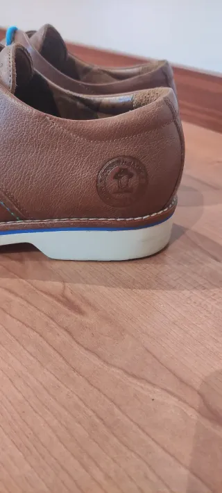 Zapatos de cuero Panama Jack en color marrón. - La talla es 44, pero yo uso una 44,5 de normal y estás me van bien, estarían entre 28,25cm y 28,50cm. - Material exterior de cuero. - Cierre con cordones. - Suela de goma. - Están prácticamente nuevas, tienen muy poco uso, no hay más que ver la suela.