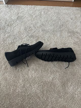 Zapatos de vestir con un estilo deportivo, confeccionados en ante. Comprados en una tienda de ropa de vestir. Muy cómodos. - Diseño de cordones. - Suela de goma.