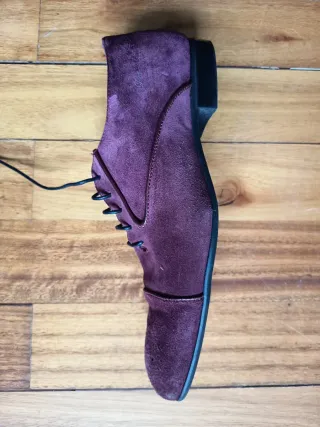 Zapatos de piel de la marca Paul&Shark en color burdeos. Talla 42. Impecables - Material exterior de ante. - Cierre de cordones. - Suela de goma.