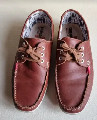 Zapatos de piel de la marca Comodo Sport. - Material exterior de piel. - Diseño clásico de mocasín. - Cordones marrones. - Detalle de costuras blancas.