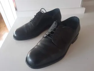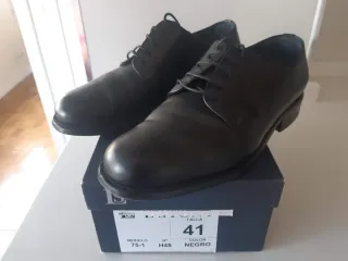 Vendo zapatos de hombre en perfecto estado. Son de piel negra y talla 41 - Hechos en España. - Diseño clásico y elegante. - Material de alta calidad.