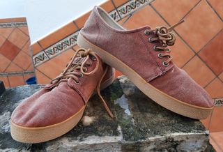 Zapatos casuales de tela para hombre. - Diseño tipo mocasín. - Cordones decorativos. - Suela de yute. Puestos una vez. talla 46 pero de pie es un 44-45 porque vienen pequeños