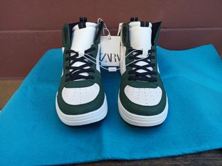 Zapato casual, botines de a Zara con cordones y cremallera de talla número 40, es de color blanco con zonas verdes. Estan nuevos sin estrenar, conservan aún la etiqueta y están en muy buen estado. Gracias