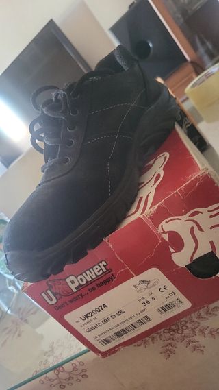Zapatillas de seguridad U-Power, talla 39, color negro. Ideales para la protección en el trabajo. - Modelo Gessato Grip S3 SRC. - En Perfecto estado. - Cómodas y resistentes.