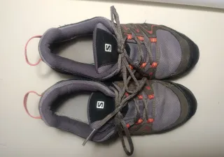 Zapatos de senderismo Salomon - Diseño en tonos grises y detalles en rosa. - Cierre con cordones. - Tirador trasero para facilitar su colocación.