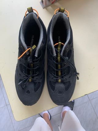 Zapatos de la marca Trapper, ideales para montaña o trabajo. Cuentan con un diseño moderno y práctico. - Cierre con cordones elásticos. - Parte superior de malla transpirable. - Suela resistente para mayor agarre. - Tirador trasero para facilitar el calce. Talla 43