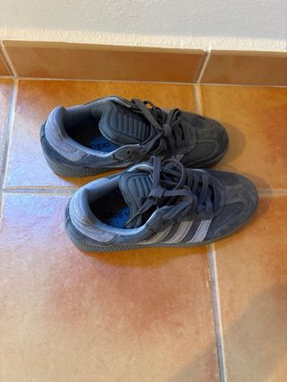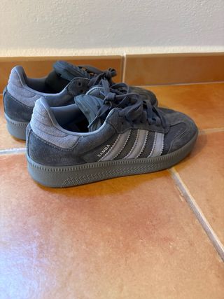Zapatos Adidas Samba para hombre en color gris. Un clásico atemporal con un diseño icónico. - Parte superior de ante y cuero. - Suela de goma. - Detalle de las tres rayas. - Nombre 'Samba' en el lateral.