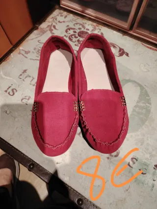 Elegantes zapatos planos en color rojo. - Diseño tipo mocasín. - Detalle metálico en la pala. - Acabado en ante.