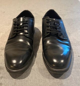 Elegantes zapatos de vestir de cuero. - Diseño clásico con cordones. - Puntera cuadrada. Solo se han utilizado en una ocasión. Se aceptan ofertas. Mira más artículos en mi perfil. Por compras conjuntas ajusto precio y agrupo envío. Revisad las fotos y estoy a su disposición para resolver dudas y preguntas.