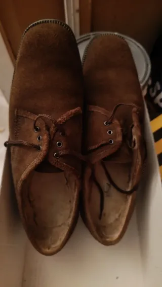 Elegantes zapatos de vestir de ante - Diseño de cordones. - Puntera fina. - Marrón - Talle 41 Se usaron mucho pero el cuero está en buen estado. Se siguen viendo elegantes y bien formados. Se pueden mejorar cambiando la suela del talón y agregando goma en la parte de adelante también para más confort