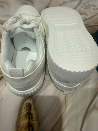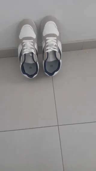Zapatos tipo tenis en color blanco. Perfectos para uso diario. - Diseño clásico. - Cordones para ajuste. - Suela de goma. - cómo para hombre como para mujer (unisex) los compré para mi Pero me han quedado grandes