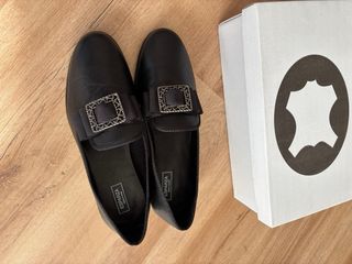 Elegantes zapatos negros de la marca ESPARZA, en talla 41 y bien conservados. - Diseño clásico y sofisticado. - Detalle de hebilla dorada en la pala. - Fabricados en España.