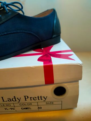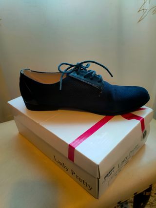 zapato con cordones plano . Color azul marino, muy cómodos con plantilla. Talla 40 Muy poco uso , como nuevo