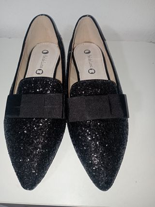 Zapato de purpurina negra ,sin ningúna puesta nuevos preciosos y cómodos Son muy versátiles te los puedes poner en un look formal o en uno casual ..
