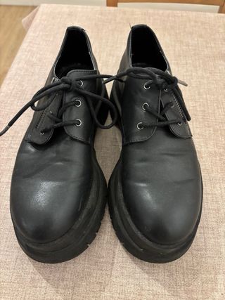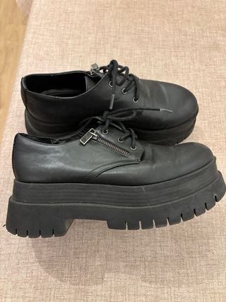 Mocasines de estilo moderno con plataforma. - Cierre de cordones. - Detalle de cremallera lateral. - Suela gruesa y robusta. - a retirar por sagrada familia / gracia