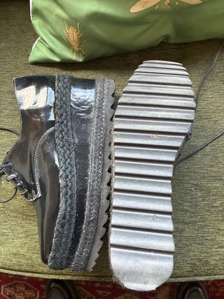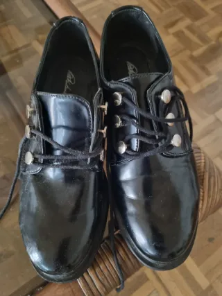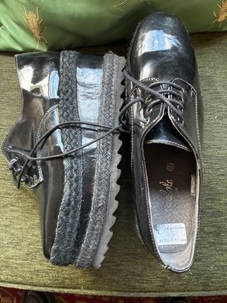 elegantes Zapatos de charol con cordones. - Color negro. - Talla 40. - Suela gruesa con detalle trenzado. solo usados dos ocasiones