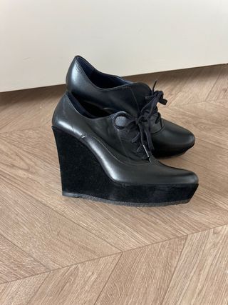 Elegantes zapatos de cuña con cordones.Nuevos. - Material exterior de piel. - Detalle de cuña en ante. - Cierre con cordones.