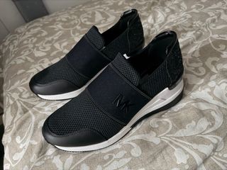 Zapatos de mujer Michael Kors. equivalen a un 37,5 pero son grandes - Diseño slip-on. - Banda elástica con logo MK. - Detalles brillantes en el talón. - Suela blanca y plateada.
