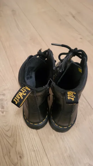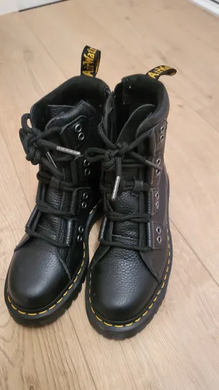 Botas de la marca Dr. Martens, completamente nuevas y listas para estrenar. Un clásico reinventado con un diseño moderno y robusto. - Piel de alta calidad con textura. - Cierre de cordones y cremallera lateral. - Tirador trasero con el logo de la marca. - Suela icónica con pespuntes amarillos.