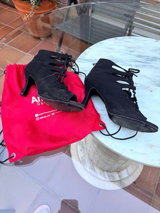 Elegantes botines de baile latino con un diseño abierto y cordones. - Material de ante. - Tacón alto.