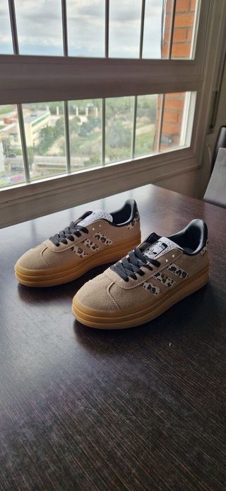 Gazelle Bold estampado leopardo. Cordones negros, lengueta blanca.