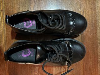 Zapatos negros estilo Oxford con plataforma gruesa y suela dentada. Son muy ligeros y cómodos, perfectos para outfits casuales o de oficina. Solo me los he puesto un día así que están impecables