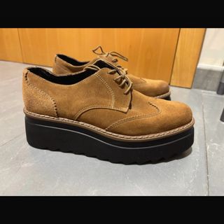 Elegantes zapatos estilo Oxford con plataforma. - Material exterior de ante. - Diseño con detalles troquelados. - Suela gruesa de plataforma.