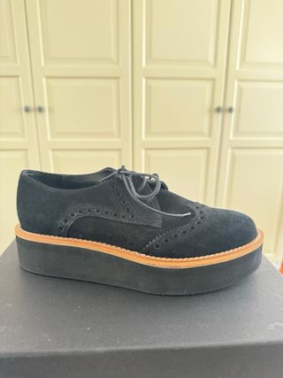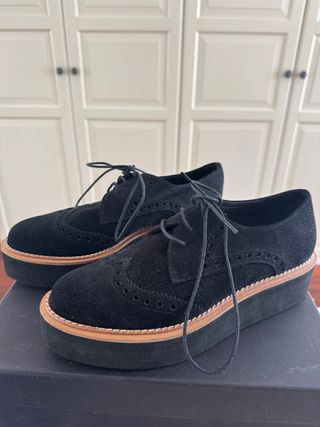 Zapato Oxford Ante Plataforma Negro sin estrenar