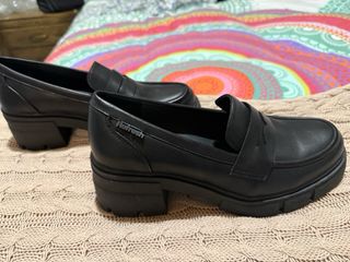 Fluchos tacón todo piel. Talla 38, Fluchos da más talla. Usados una vez. Fabricados por Dorking by Fluchos. Extracómodos, con plataforma. Sin rozaduras en la piel. En su caja original.