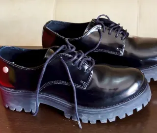 Zapatos de cordones elásticos con plataforma. Son de piel y súper cómodos, nada pesados. Usados solo en dos ratos