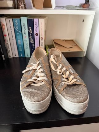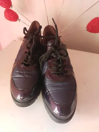 Poco uso. Muy cómodos y ligeros, no pesan. - Acabado metalizado - Diseño tipo Oxford. - Tacón de cuña/plataforma. - Cierre con cordones.