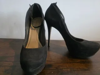 Las use 1 vez, lo di todo, pero luego desarrolle miedo a las alturas y por eso las vendo. Elegantes zapatos de fiesta - Tacón grueso y plataforma. - Tiras con hebillas plateadas. - Material cuero aterciopelado. - 12 cm de alto - 36