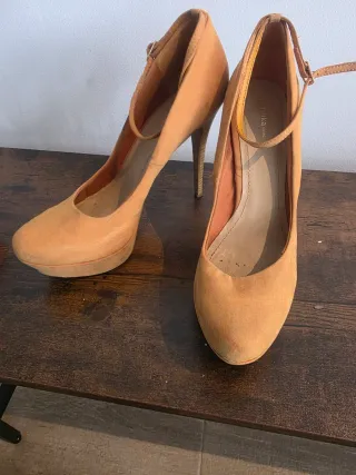 Elegantes zapatos de tacón de ante. - Diseño de plataforma. - Tacón alto y fino. No se han usado nunca.