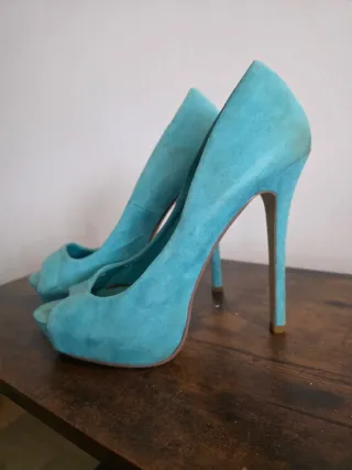 Elegantes zapatos de tacón alto con un vibrante color azul turquesa. Perfectos para añadir un toque de estilo a cualquier atuendo. - Diseño peep-toe. - Plataforma delantera. - Tacón de aguja.
