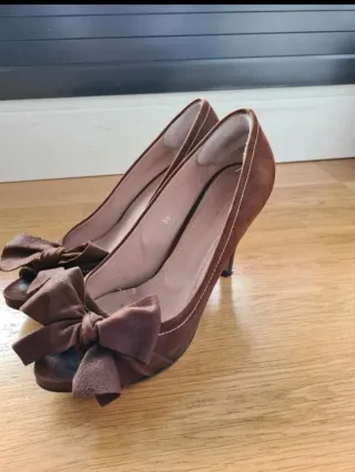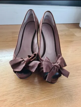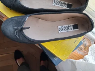 Elegantes zapatos tipo bailarina de la marca Antonio Parriago. Tacón plataforma no muy alta, tiene rasgos de uso. - Exterior de ante. - lazo en la punta. Tengo otros iguales en burdeos